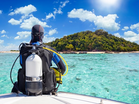 L'un des nombreux avantages de la Thaïlande est sa géographie. Le Royaume de Siam peut se visiter à l'année grâce à son climat essentiellement divisé en deux zones. Ainsi, de novembre à avril, vous pourrez plonger dans la mer d'Andaman, à l'ouest du pays ; c'est là que l'on trouve Koh Lanta, les îles Surin (où se trouve l'exceptionnel spot de Richelieu Rock), les îles Similian ou encore Phuket.