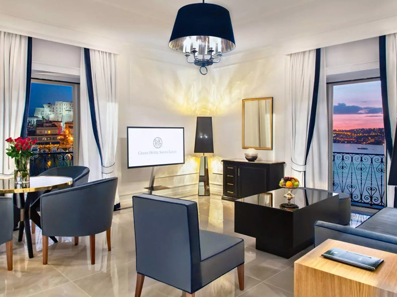 Séjournez dans un hôtel datant du début du XXe siècle, situé dans le coeur historique de Naples. Face au Castel dell'Ovo, sur la célèbre Via Partenope qui borde la mer, le Grand Hotel Santa Lucia est décoré avec soins, dans un esprit néo-classique. Il saura ravir les voyageurs les plus exigeants.